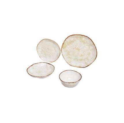 Rosa / Porcelain ( Sponge Beige Rock Reactive Organic Round Dinnerware Set 24 PCS