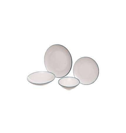 Rosa / Porcelain ( White + Petroleum Line Bianca Organic Round Dinnerware Set 24 PCS )